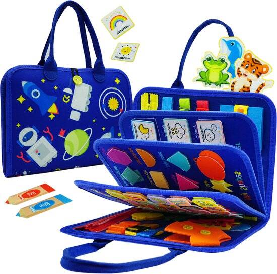 1. Een Montessori activiteitenboekje - Dit boekje biedt verschillende leerzame activiteiten. Van puzzels maken, letters en kleuren rangschikken, tekenen tot het leren van praktische vaardigheden zoals schoenen strikken en riemen aanspannen – alles komt aan bod.
